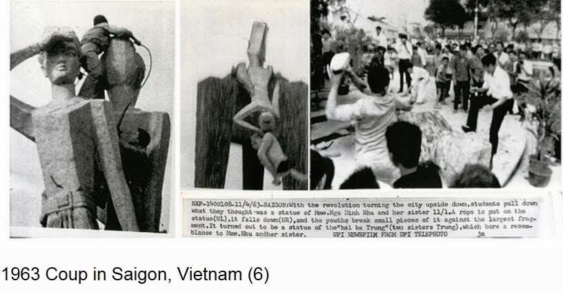 Tượng “Mẹ con bà Nhu” bị kéo sập và sinh viên học sinh đập vỡ “đầu bà Nhu”