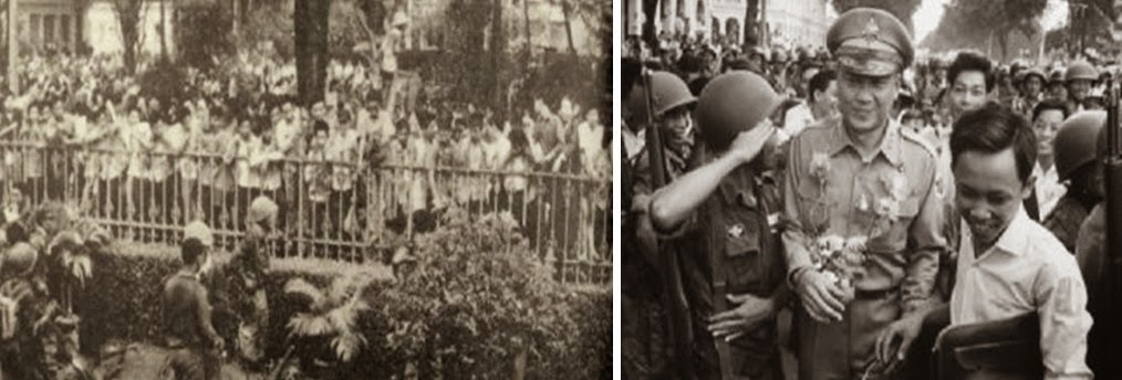 [18] “Từ 7 giờ sáng ngày 2-11-1963, khi đài phát thanh Sài Gòn báo tin dinh Gia Long bị quân đội chiếm thì già trẻ lớn bé lũ lượt kéo nhau đi xem. Lời hò reo, tiếng cười vang với sắc diện tươi vui của mọi người chứng tỏ sự giải thoát gông cùm kềm kẹp của độc tài đã bóp nghẹt lòng dân trong chín năm trời đăng đẳng” (Bác sĩ Dương Tấn Tươi, Cười - Nguyên nhân và Thực chất , Sài Gòn 1968, tr.44 ). Còn thi sĩ Đông Hồ thì:“Nỗi ức hiếp, nỗi căm hờn bị đè nén, bị vùi dập một cách tàn nhẫn bất công trong 9 năm trời, một sớm được giải thoát, được cởi mở, mà phản ứng chỉ có chứng ấy thì tưởng quần chúng nhân dân Việt Nam năm 1963 này cũng đã tỏ ra hiền lành nhiều lắm, và cũng đã biết tự hạn chế, tự biết kềm hãm sức giận dữ hung hãn của mình rồi đó.” (Nguyễn Hiến Lê, Tôi Tập Viết Tiếng Việt, 1988, tr. 21).