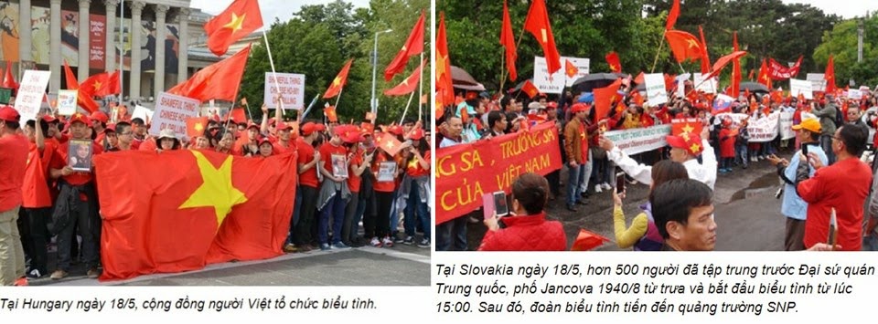 Trong hơn hai tuần qua, kể từ đầu tháng 5 năm 2014, khi thông tin về việc Trung Quốc kéo giàn khoan dầu Hải Dương - 981 và một đoàn tàu cả trăm chiếc hung hăng xâm nhập hơn 80 hải lý vào sâu trong thềm lục địa (mà cũng là vùng đặc quyền kinh tế EEZ – Exclusive Economic Zone) của Việt Nam, thì các cuộc biểu tình của người Việt đã xãy ra rất nhiều nơi ở trong và ngoài nước.