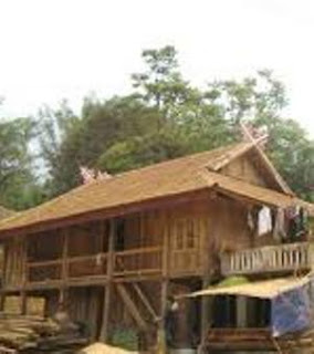 Giờ đây, mỗi khi gặp một bản bất kỳ của đồng bào Thái, hình ảnh đầu tiên mà thị giác chúng ta thu được, chính là cái khau cút trên nóc mỗi ngôi nhà sàn truyền thống. Như mọi người đều biết: Cũng là dân tộc Thái, nhưng chỉ ngành Thái đen mới có khau cút, chứ ngành Thái trắng không có khau cút. Mặc dù cả hai ngành Thái đều di cư vào nước ta (ngành Thái trắng do thủ lĩnh Nhọt Chăm Cằm dẫn đầu), tuy từ hai điểm xuất phát khác nhau. Ngoài truyền thuyết về cái khau cút, người Thái còn có truyền thuyết về ngôi nhà sàn (đúng hơn là về cái chái nhà sàn). Song cũng giống như cái khau cút, chỉ ngành Thái đen mới có truyền thuyết về ngôi nhà sàn, chứ ngành Thái trắng thì không. Truyền thuyết của người Thái đen kể rằng thuở khai thiên lập địa, tổ tiên của họ được thần rùa (tiếng Thái là Pua tấu), dạy cho cách làm nhà theo dáng dấp con rùa đứng. Con người trông vào đấy mà tưởng tượng, chân rùa là những cột nhà, mai rùa là mái nhà. Do vậy chái nhà người Thái đen khum khum hình cái mai rùa, trong khi chái nhà người Thái trắng lại theo mặt phẳng nghiêng, có góc hẳn hoi.