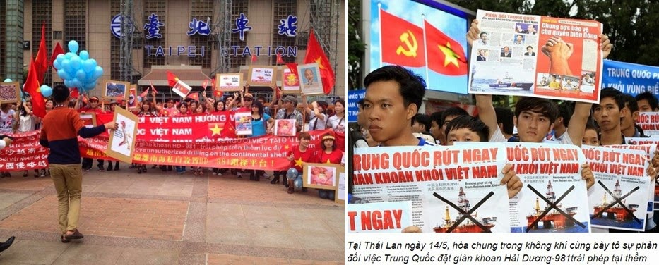 Trong hơn hai tuần qua, kể từ đầu tháng 5 năm 2014, khi thông tin về việc Trung Quốc kéo giàn khoan dầu Hải Dương - 981 và một đoàn tàu cả trăm chiếc hung hăng xâm nhập hơn 80 hải lý vào sâu trong thềm lục địa (mà cũng là vùng đặc quyền kinh tế EEZ – Exclusive Economic Zone) của Việt Nam, thì các cuộc biểu tình của người Việt đã xãy ra rất nhiều nơi ở trong và ngoài nước.